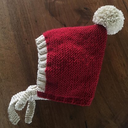 This festive pixie hat is just right for baby's first Christmas! Fitting snuggly round the face with a contrast rib detail, baby's ears will be protected from chill winds and the overall effect is completely delightful! The snowball pompom detail is designed to sit on top so that it's visible in the pram/car seat but the baby won't suffer uncomfortable bulk. Made from just one 50gm ball of DK weight yarn plus a small amount of contrast for the ribbing, straps and pompom, this is a really quick knit and a jolly but practical Christmas accessory.