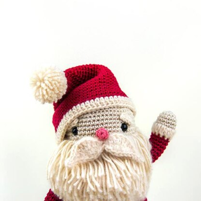 Crochet amigurumi Santa Claus full of details: beard and moustache, inevitable red hat with pompom, sturdy boots (for jumping on roofs!), jacket details and belt with gold buckle plus JAYG (join as you go) technique for joining the arms.