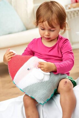 Bring some festive fun to your sofa with a Santa Cushion with a squishy pompom nose. Designed by Amanda Berry @fluffandfuzz, the cushion is knitted in acrylic DK yarns on single pointed needles (not in the round). The body of the cushion is stockinette with intarsia colour-work for Santa’s beard, and charts plus written instructions are included. You will also need a bag of toy filling to stuff the cushion and a pair of wobbly eyes. For confident beginners and above, other techniques used include casting on and off, knits, purls, increases and decreases, and seaming to finish.