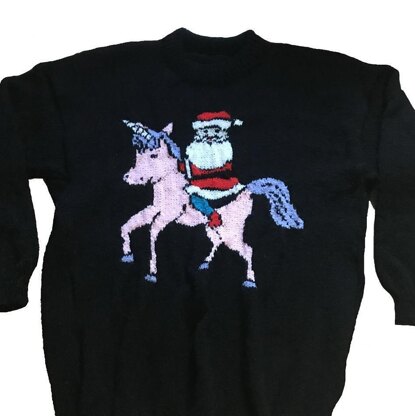Childrens & Adults Santa On Unicorn Jumper / Sweater Knitting Pattern