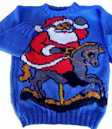 Childrens & Adults Santa On Rocking Horse Jumper / Sweater Knitting Pattern.