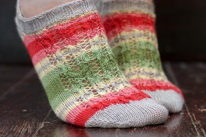 Cozy up, grab some apple cider, get your Rudolph on, and knit yourself some of these cable and eyelet adorned socks!