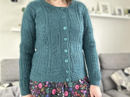 Yarn : This cardigan is knit with a yarn of type fingering + Lace weight = DK (Fingering + mohair from Lise Tailor). Approx :