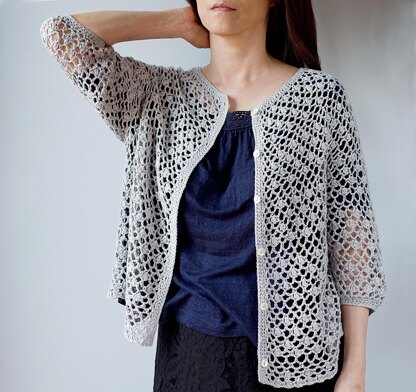Perfect for days that feels somewhere between seasons, Sarah makes for a versatile piece that you can dress up or down. The delicate textured lace pattern offers visual interest, while the subtle A-line shape and roomy three-quarter sleeves allow for easy layering. The cardigan is worked seamlessly from the top down, and can be lengthened easily to suit your preference.