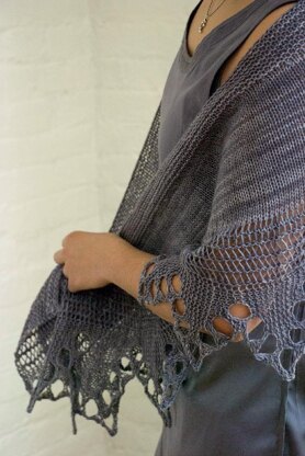 Taking advantage of simple stitch patterns and a border that is worked sideways, the construction of Saranac shows off handspun, and hand-dyed yarns beautifully.