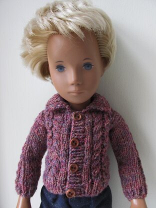 Lovely cabled jacket for Sasha or Gregor doll uses 100% Shetland wool, 3mm straight needles and 2.5mm cable needle. Also uses 4 x 9mm buttons.