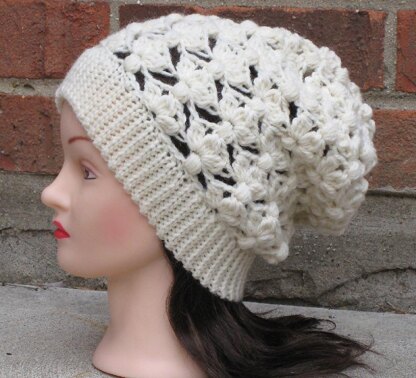 This pattern is for a beautiful crocheted slouchy beanie featuring a gorgeous puff and flower pattern and a knit-look ribbed brim. This hat is soft, snuggly and feminine, and will keep your head nice and cozy on those cold winter days! The pattern comes with easy to follow step-by-step instructions and helpful, clear photos.