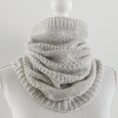 The Satellite Cowl is a slouchy soft minimalistic design that's worked seamlessly in the round using a fingering/4 ply yarn held together with a mohair silk lace/2 ply yarn.