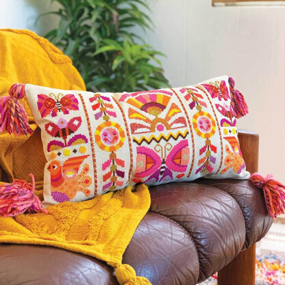 Turn up the AC, cause here comes a heat wave! Stitched in a vibrant mix of colors on large count fabric, this cross stitch project makes a big impression. Made into a pillow or framed on the wall, you'll smile every time you see it. This is a counted cross stitch chart printed on paper, fabric and floss are not included.
