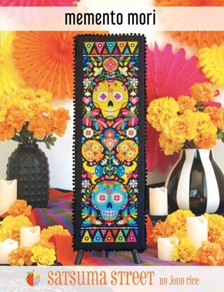 Cover is printed on heavy cardstock, this large color chart spans two 11” x 17” inserts. DMC floss codes, fabric suggestion included.