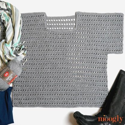 I wanted to make a crocheted t-shirt sweater. Something you can just throw on over a tank and leggings and go - or dress up with the right accessories! But it's simple enough to make that you can whip this up, even if this is your very first crocheted sweater.