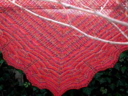 This is a top down triangular shawl and has written instructions for the top part of the shawl, and is charted for the borders.