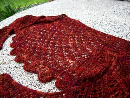 I have always loved the way the cast-on edge of lace patterns highlights the undulations of the pattern. This shawlette, or shoulder shawl, begins with a lace border pattern, and is worked from the bottom up. Once the stitches are reduced for the main body portion, the shaping of the shawl is controlled by incorporating an i-cord bind off to stitches at either end of the shawl. As the shawl takes shape, the rows get shorter & shorter, until only the central motif is left on the needles. Schaefer Anne is a great choice for this pattern; the combination of stunning colors and the drape of this crescent shaped shawl provides a beautiful, light weight wrap for cool evenings. Design Note: The first three rows of this shawl are knitted in reverse stockinette, followed by a purl transition row prior to beginning the lace patterning. This makes a slightly rolled edge that will coordinate with the I-cord at the top:o)