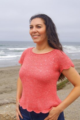 Yarn: Rylie by Hikoo (274 yards / 250 meters, 100 g / 3.5 oz, 50% Baby Alpaca, 25% Mulberry Silk, 25% Linen) or any sport weight yarn that obtains gauge.