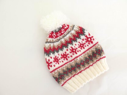 Your child will feel extra special in this Scandinavian Ski Hat. Inspired by the classic stranded snowflake patterns, this knit hat pattern is a great introduction to some easy stranding. You'll love this adorable version of a classic pompom ski hat. Give your child a knitted hat they will love to wear while going on winter adventures outside. The pattern for this hat will make a cosy, warm and windproof accessory for cold weather. The designs are inspired by traditional Scandinavian hats. They use stranding and a smaller needle size to create a truly windproof fabric that will keep out the strongest gusts.