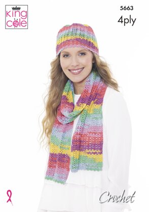 Scarf, Hat & Triangular Wrap in King Cole Summer 4Ply - 5663 - Downloadable PDF is a Intermediate Crochet pattern by King Cole, available as a Downloadable PDF and includes instructions in English. Super fun to make, this pattern could be your next masterpiece!