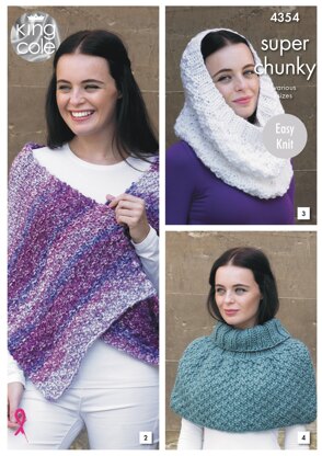 Scarf, Shoulder Wrap, Snood, Polo Shoulder Cover, Hat and Wrist Warmers in King Cole Super Chunky - 4354 - Downloadable PDF is a Intermediate Knitting pattern by King Cole, available as a Downloadable PDF and includes instructions in English. Super fun to make, this pattern could be your next masterpiece!