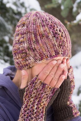 When I designed and knit this hat, we were spending a couple of weeks rock climbing by Scheelite creek. Scheelite is one of the major ores of tungsten and the biggest source of tungsten in the US. Scheelite is quite soft and therefore not normally used in jewelry. This hat is a little unique in its construction: it is worked sideways, with a cable to connect the hat in the round and finished off with an applied I-cord edge.