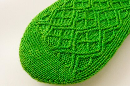 The pattern is written for the magic loop method for knitting socks; however, the design could be worked on double-pointed needles or mini-circulars instead should you prefer (ensure you denote your instep stitches with extra markers – so you don’t miss the placement of the heel or toe shaping).