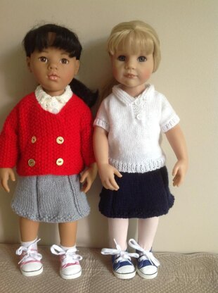 Delightful knitting pattern for 18" Girl Dolls school uniform.