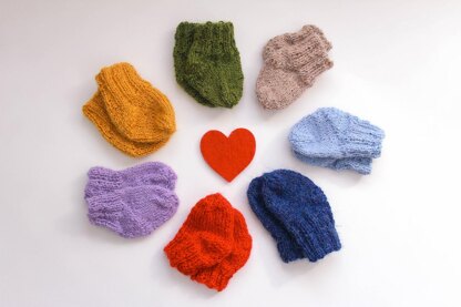 Diese schnell gestrickten Puppensöckchen werden mit dem Nadelspiel vom Schaft zur Spitze hin gestrickt.