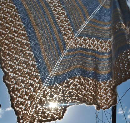A beautiful shawl combining a mix of stripes and lace.