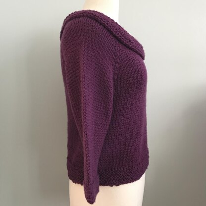 Sample is knit with Cascade Superwash 128 Italian Plum which is a beautiful buttery soft yarn in a bulky weight. This particular yarn makes an especially soft and luxurious sweater.