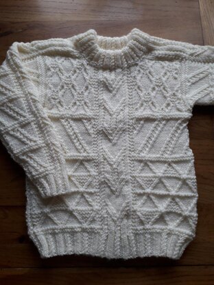Crew neck Aran jumper with saddle shoulders, age 10-11 years, approx 30" chest