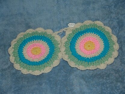 Pattern is for potholder with notes to make matching coaster and hot mat. Great beginner project. Use your scraps. Fast project for bazaars and other craft sales. Finished potholder is about 7-1/2"