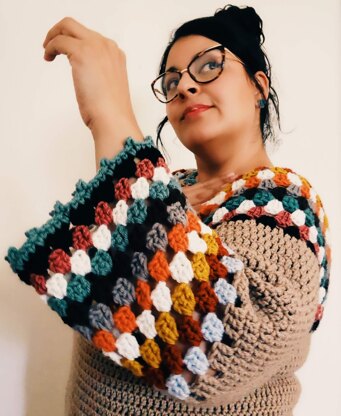 Made with a simple granny square repeat and made top down with no seaming.