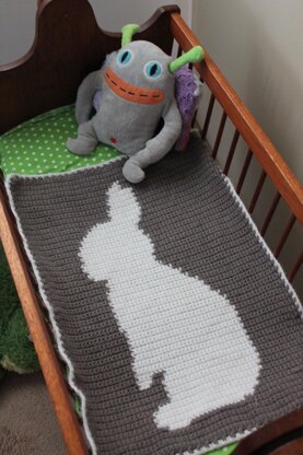 This pram sized blanket measures 43 x 56 cm. (17 x 22 inches.) perfect for taking out of the house due to its size, that uses the technique of tapestry crochet.