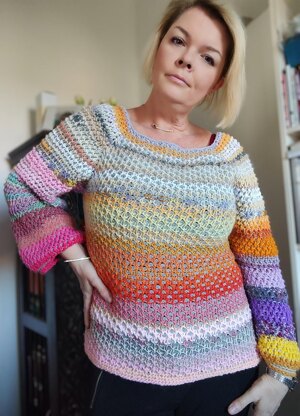 This unconventional sweater in Tunisian crochet is worked top-down and in the round, using modern Tunisian stitches, such as the Cross&Purl and the Double&Purl Stitches, alongside with basic ones. The great advantage of this project is that it is done using remainings of yarn, meaning it is a total stash buster! Also, it can be highly personalised. Sizes included are XS - 3XL.