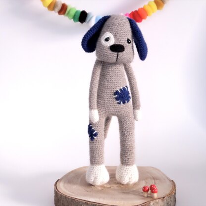 This is Scraps the dog! When finished he measures around 13 inches tall (when using the recommended yarn and hook) The Pattern is step by step, I recommend it as a confident beginner pattern. The instructions are detailed and easy to follow if you know the basic stitches and techniques used to make amigurumi . There are lots of pictures included in the pattern. The pattern is a PDF and you will need Adobe Reader to open it. Adobe Reader is free to download from the internet.