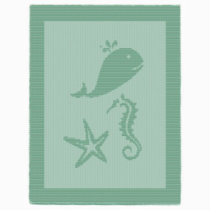 Add a splash of nautical magic with this beginner-friendly knitting pattern! Both the border and motifs are worked in garter stitch, while a smooth stockinette background highlights three sea-inspired designs — a whale, a seahorse, and a starfish. Only knit and purl stitches are used, with no charts, colorwork, or cables required. Clear row-by-row instructions guide you through every stitch, making it perfect for practicing basics and creating a cozy ocean blanket, lapghan, rug, or wall hanging.