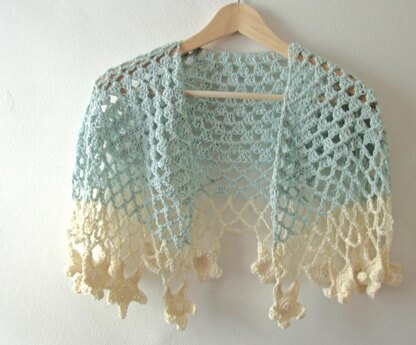 Written pattern for my Sea Breeze Shawl. Worked in calico yarn for a summery shawl.