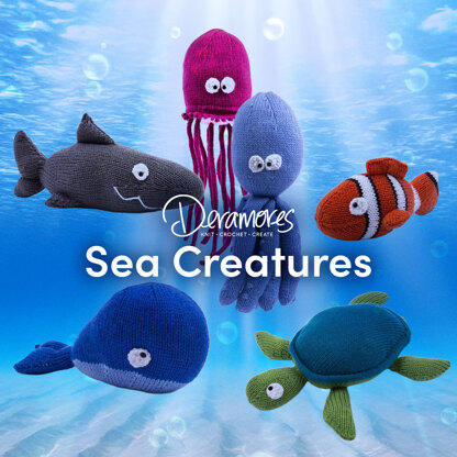 Deramores Sea Creatures PDF download knitting pattern by Amanda Berry. Super cute and fun to make, this collection of knitted ocean-loving friends could be your next masterpiece!