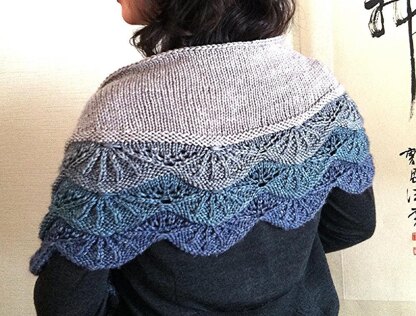 An elegant scallop border graces this narrow crescent shawl shaped by short rows. The shawl is knit bottom-up with either worsted or aran weight yarn and can be worked with multiple shades of color for a fun layered effect. The multicolored shawl pictured used aran-weight yarn; the single-color shawl used worsted weight.