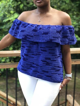 The Sea of Summer Top was inspired by the ever classic off the shoulder look that crosses multiple decades and occasions. Whether wearing it to the office, to a date or a family picnic, you'll be comfortable and stylish. This garment was designed with 4" of positive ease to compliment all shapes. The Ruffle section can be worn across the shoulders or pulled up to create a different look.