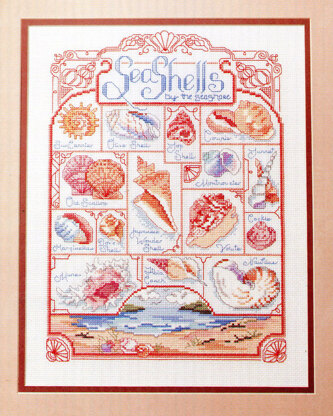 By Linda Gillum. Who sells Seashells by the Seashore? You can be the one stitching them. We have a color-blocked panel sampler of shells that are a beach comber’s delight. This is a reminder of special days walking along the ocean shore.