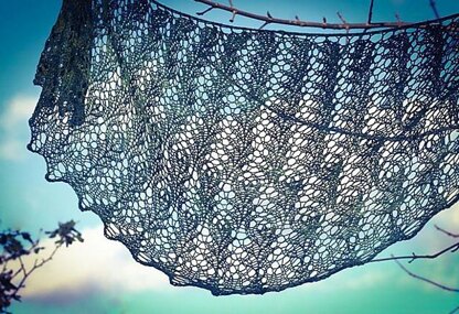 Sea Songs is a top-down crescent shawl with an extremely simple 9 stitch repeat which can be used in two different ways to allow each knitter to sing their own song.