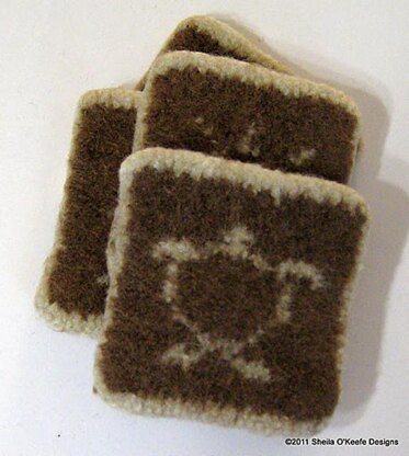 These quick and easy coasters are one of the results. They're a wonderful way to use up worsted weight leftovers. They're also a great project to learn stranded knitting. Almost any inconsistency in the beginner's tension will literally come out in the wash when the coaster is felted.