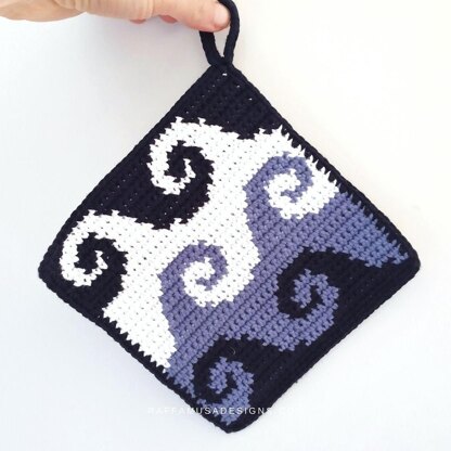 This tapestry crochet Sea Waves Potholder is part of my “A Year of Potholders” collection with one tapestry crochet potholder pattern for every month of the year.