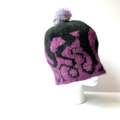 Due to the size of the colorwork chart, the pattern is written in one size and two gauges are given to achieve either a child size or an adult size hat.