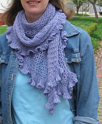 This shawl does double duty, either as a lightweight wrap or, looped around your neck a couple of times, a surprisingly warm scarf. Although I really like the drape and swoosh of the Taj Mahal yarn shown, you could work this in virtually any yarn you like. The pattern is very simple, and since it can be worked to any size, gauge doesn't really matter.