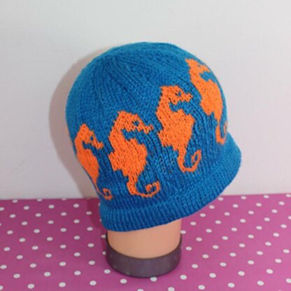 This is my Seahorse Ski Beanie Hat CIRCULAR knitting pattern. Its worked in the round on circular needles in any dk yarn of your choice. The pattern provides a full colour chart and lots of photos to help you throughout.