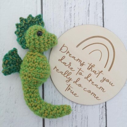 MATERIALS NEEDED - 3.5mm (E/4) crochet hook, dk (light worsted) weight yarn, polyester toy stuffing, yarn needle. 2 x 6mm (0.2") toy safety eyes for each seahorses. Stitch markers are essential.
