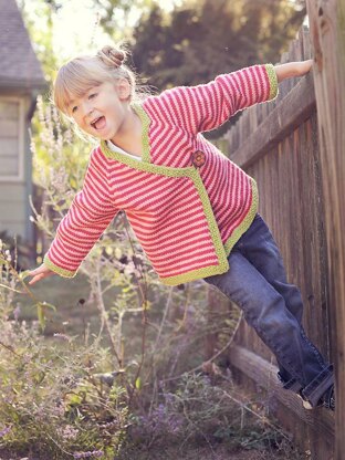 This stylish & practical sweater is knit from the top down without a single seam to sew! The border is picked up afterward allowing you the option of using a coordinating color. Pattern includes several design options including instructions for stripes and a textured central band, borders in seed or garter stitch and two types of button closures. With three sleeve styles and sizing from 3-12, this will become your kids' year round go-to sweater. Pattern is suitable for the beginning knitter and is a great choice for a first sweater project!