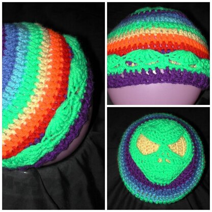 Searching the Heavens For Intelligent Life this Alien's life ambition is to make contact with other Sentient organisms. He gazes skyward while his minions scan the horizon Make it beanie sized, or add 2 inches or more for a slouchy style. Child 18 inches around by 6 inches long X Small 20 inches around by 7 inches long Small Beanie 22 inches around by 8 inches long Medium 24 inches around by 9 inches long Large 26 inches around by 10 inches long Pictures of many of the steps, American crochet terms .... And don't forget the tinfoil liner