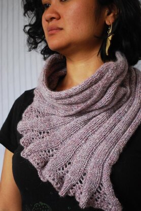 The cowl is worked seamlessly by picking up stitches along an edge, but could be worked flat and seamed as an alternate construction.