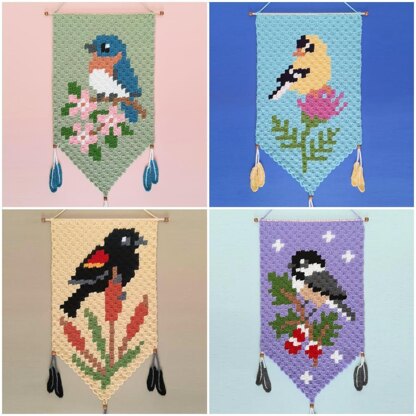 Using the popular technique C2C (Corner-to-Corner), these Banners include both full Line-by-Line instructions and color Chart, along with optional Feather Fringes!